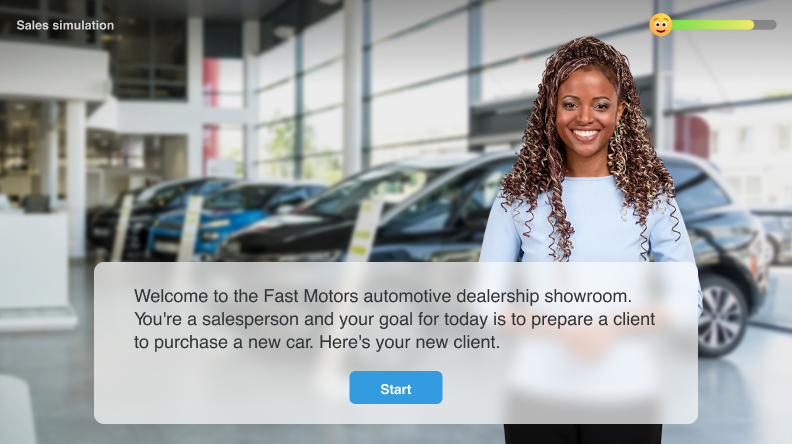If you’re designing a course for someone who needs to improve their communication skills, try a dialogue simulation. It imitates an actual conversation with a person, helping learners master communication skills in a risk-free, low-pressure environment.