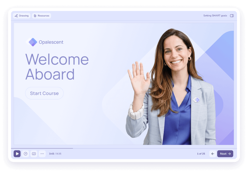 Build stunning, slide-based training with quizzes, interactions, role‑plays, and training videos.