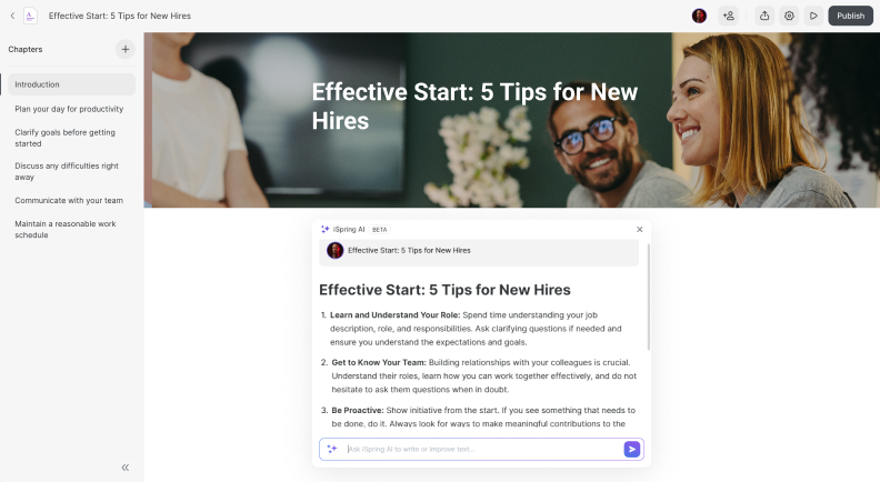 Wednesday: AI handles formatting and creates multiple delivery versions. Sarah focuses on crafting scenarios that feel authentic to her learners’ real challenges, using her deep understanding of workplace dynamics.