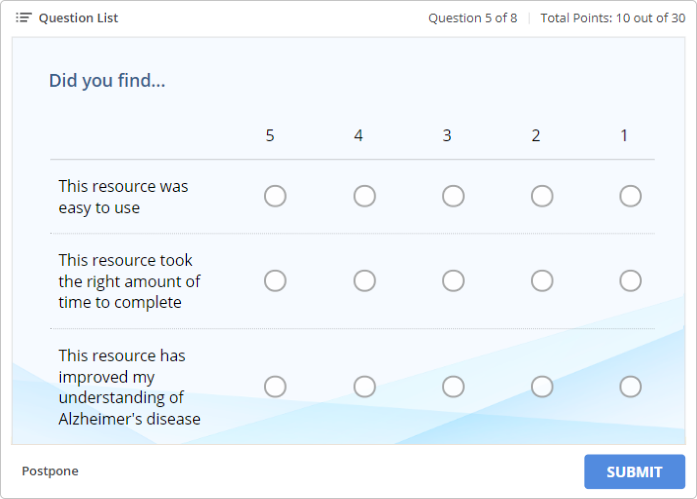 As this project was part of a study I was conducting, I needed to collect information on how effective, useful and understandable this resource was. iSpring quiz tools allowed me to easily create quizzes to assess the knowledge of the subject before and after the resource to gauge its effectiveness, and also some survey questions about the user experience of the resource. I was able to choose from a variety of question types, including multiple choice, fill in the blanks and hotspot to measure understanding in a variety of ways.