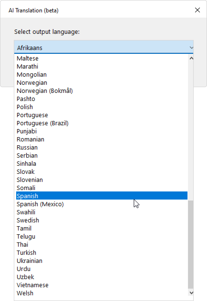 6. When the process completes, review the layout and formatting in the translated version and adjust if needed.