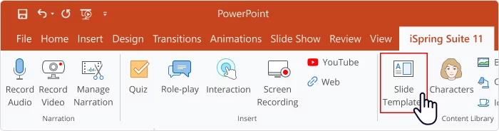 Get a free 14-day trial. Open PowerPoint and go to the iSpring Suite 11 tab.