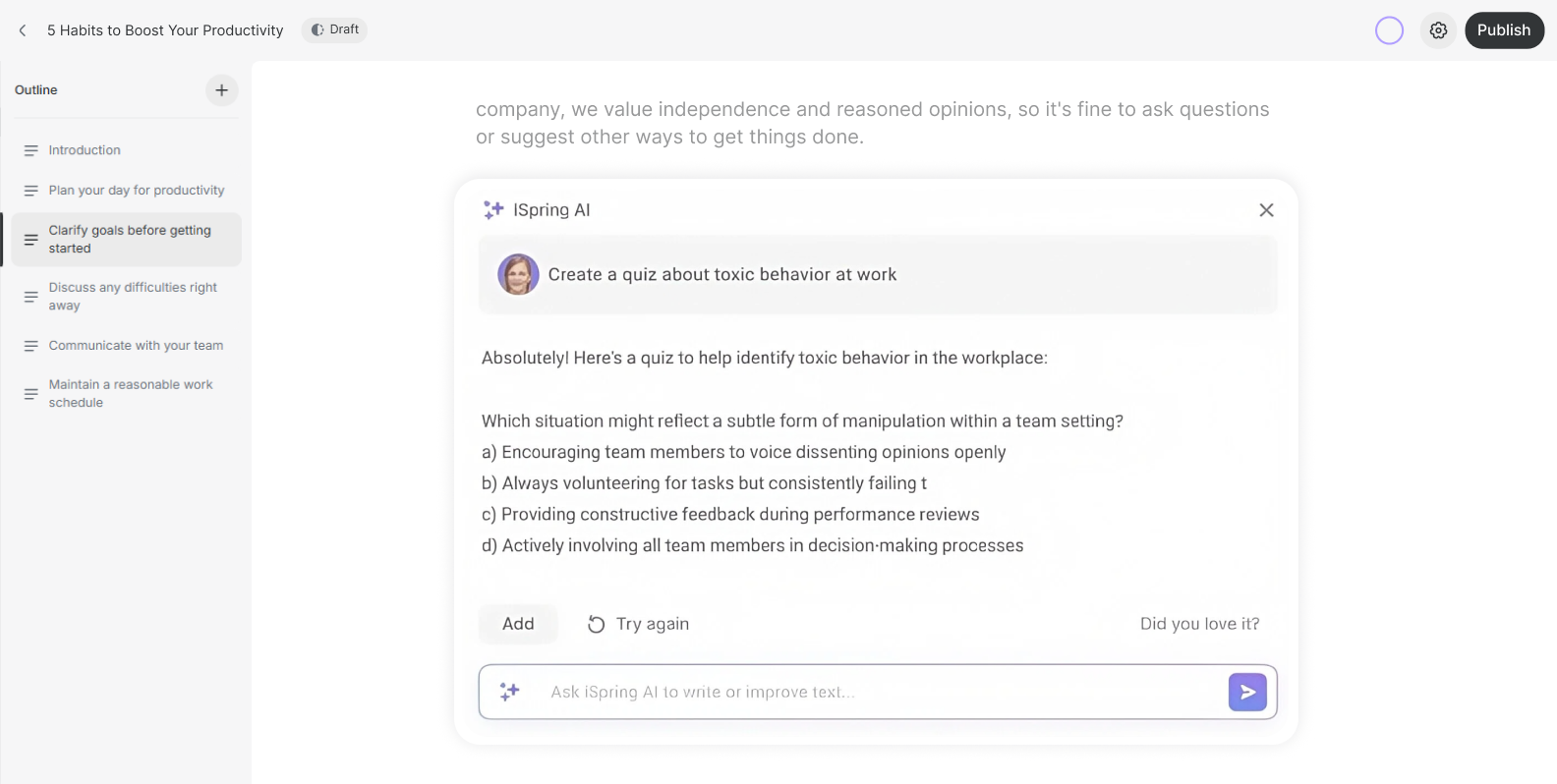 With these updates, iSpring Suite now goes beyond being a robust authoring toolkit to become an intelligent partner in course creation.