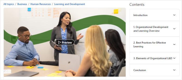 | 12. Organizational Learning and Development Course by Britt Andreatta | 53 minutes – $34,99 or free with a LinkedIn Learning subscription |